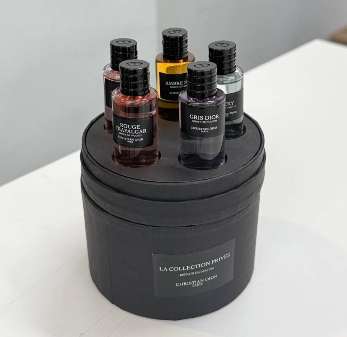 The Dior Private Collection Mini Set features five of the most loved luxury creations from Dior’s exclusive line. From the playful sweetness of Rouge Trafalgar, the freshness of Lucky, the timeless elegance of Gris Dior, to the rich sensuality of Ambre Nuit – this set is perfect for fragrance lovers who want variety and sophistication in travel-friendly bottles.